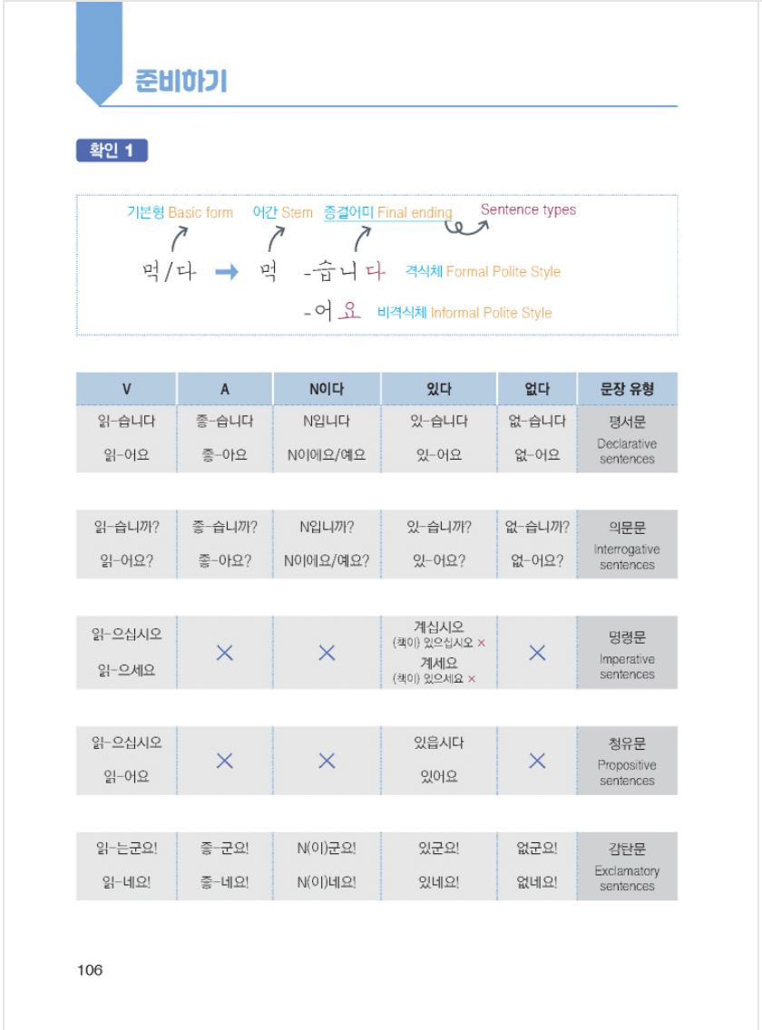 Libro para aprender la forma de estructurar enunciados en Coreano. Te muestra las partículas, el orden y conjugaciones que debes utilizar para armar frases.