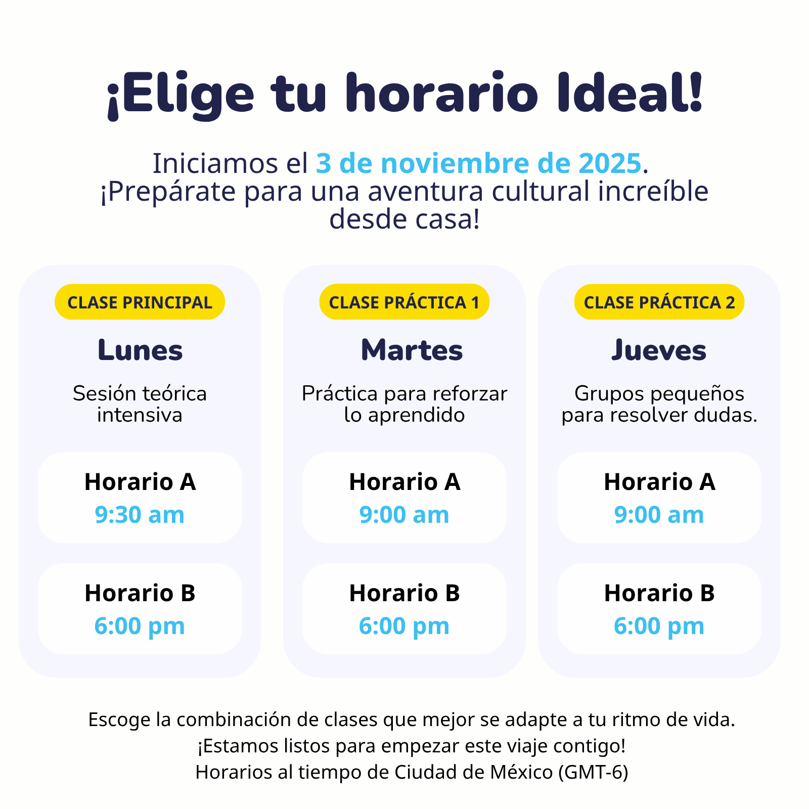 Iniciamos el 3 de noviembre de 2025. ¡Prepárate para una aventura cultural increíble desde casa!
